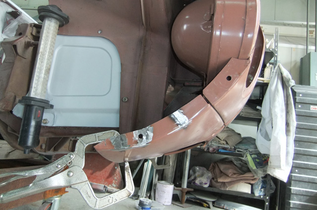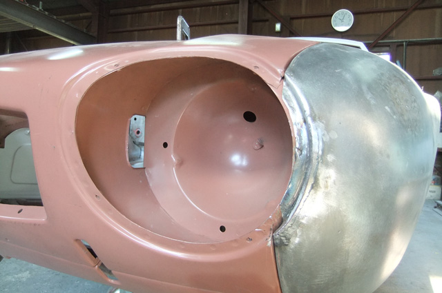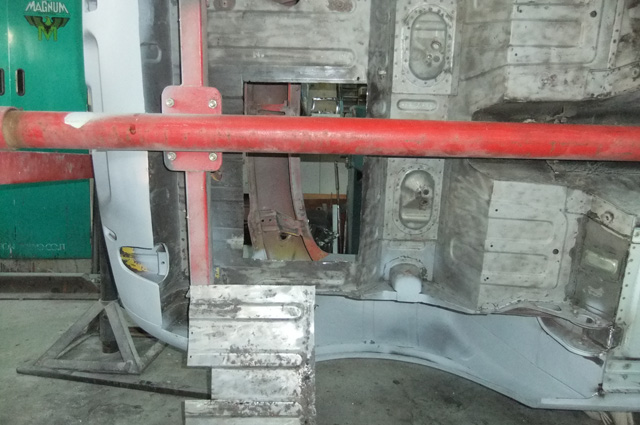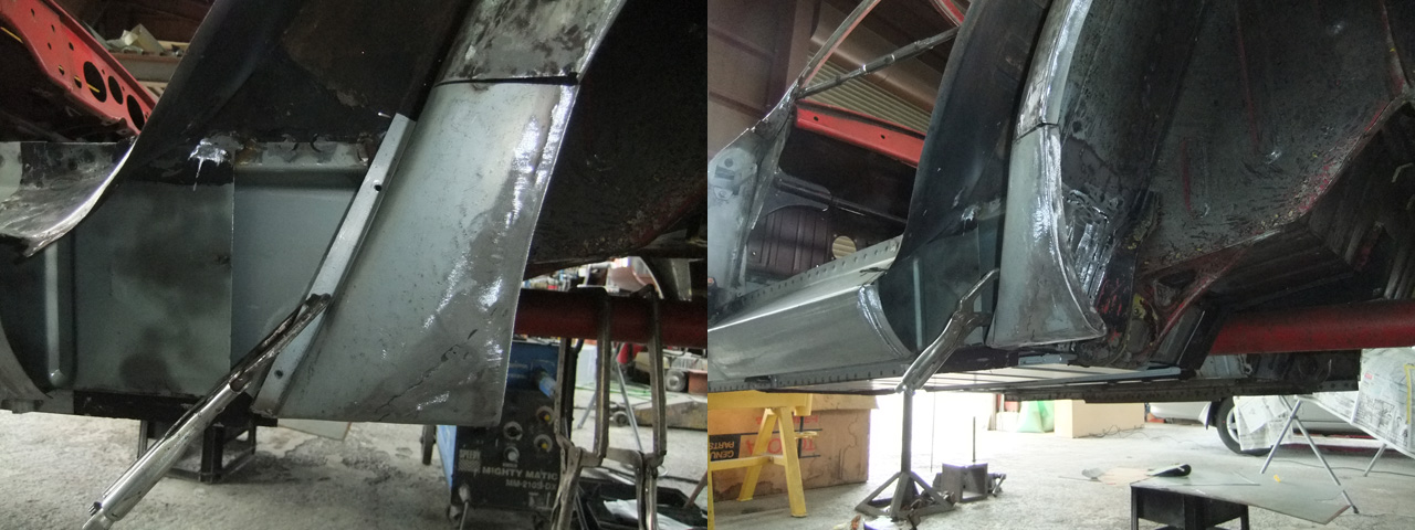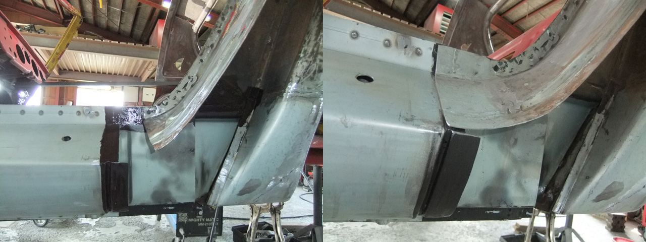 左ダッシュパネル、フレームとエプロンが取り付いている辺りです。